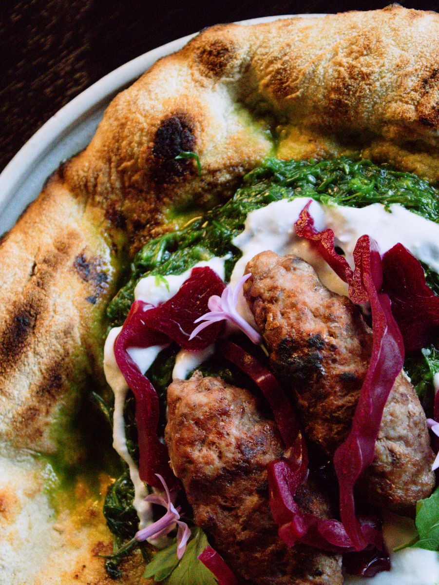 2. Lamb koftas with wild garlic flatbread and red cabbage slaw