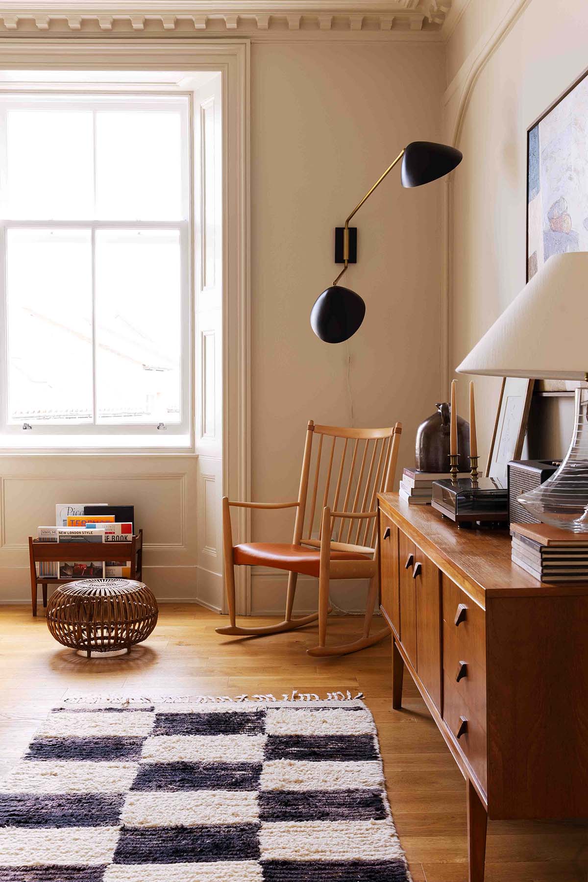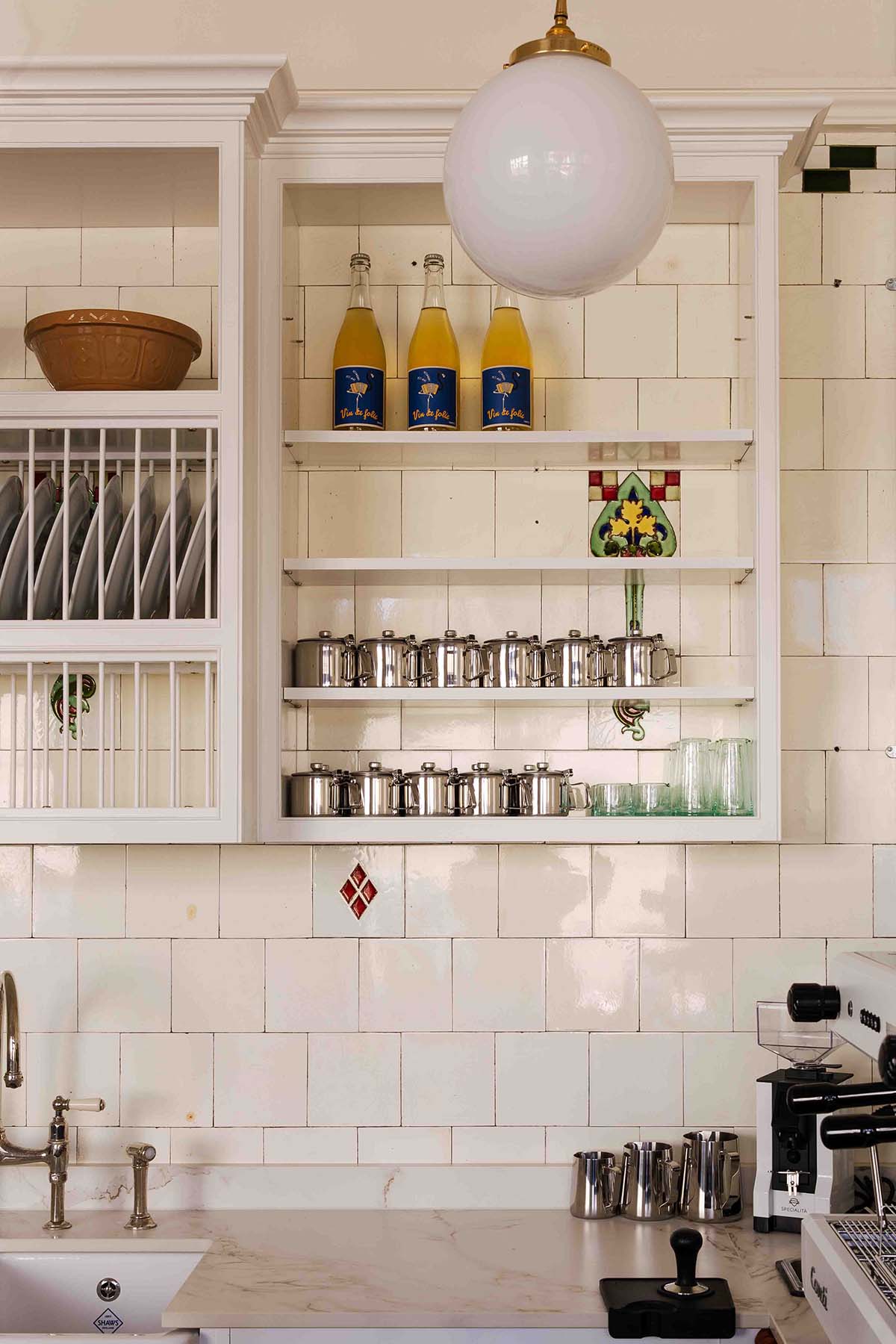 The Dundonald has a serene, painterly quality, washed in earthy neutrals and decorated with thoughtful restraint. Antique finds, Danish furniture, wicker baskets and sculptural ceramics all gather together with ample breathing space. Cluttercore is not welcome here, nor in The Mercat, where a palette of cream, tomato and sage (drawn from the original butcher shop’s Art Nouveau wall tiles) pairs with Ercol chairs and modest marble tables. “I don’t like waste or frivolous things,” says Laura, who loves a trawl round charity shops and antiques markets for vintage pieces. She tends to make purchases with her heart more than her head. “I often don’t know anything about the things I’m buying. If I like it, I get it.”