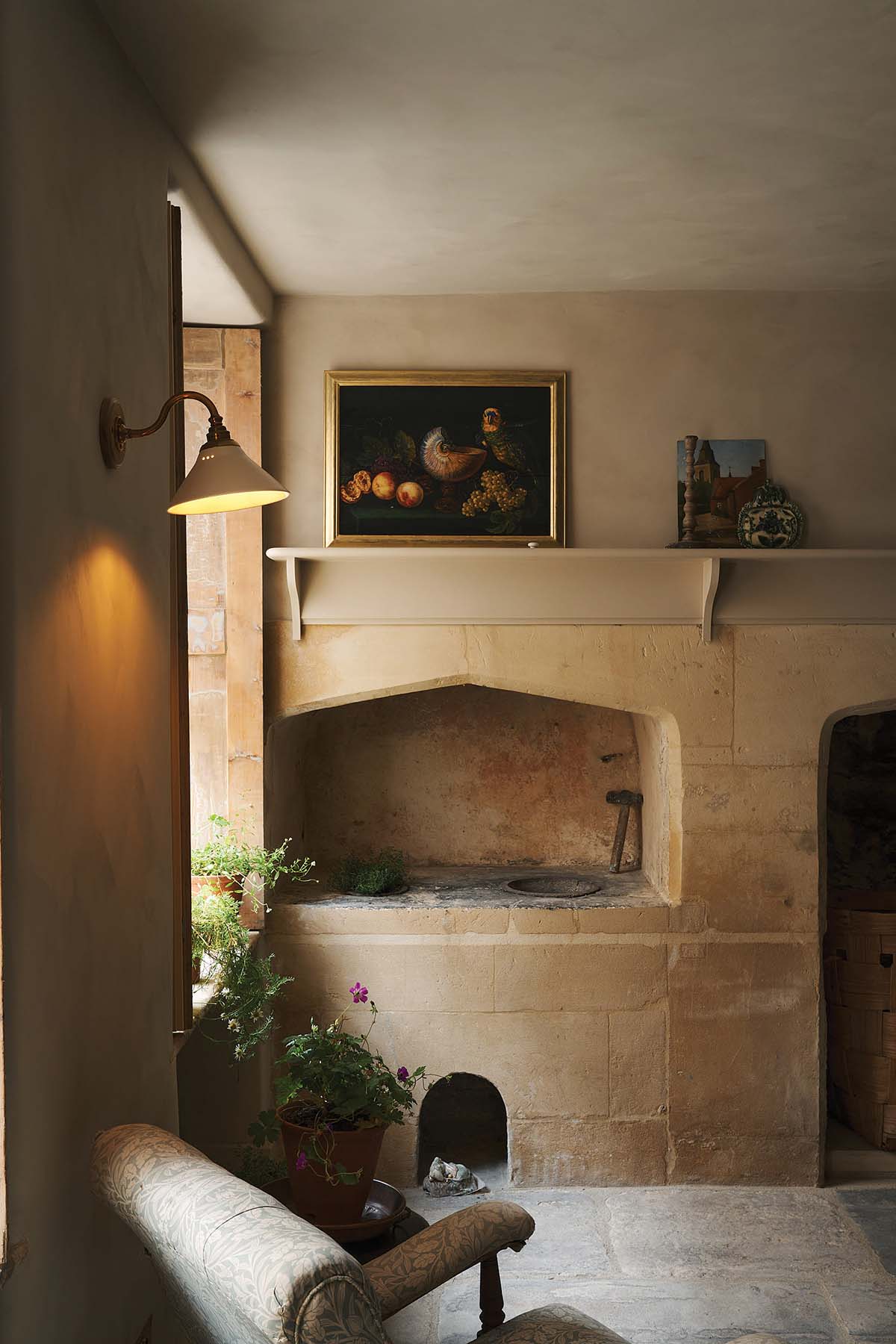 “It takes a lot of work to make something look so simple, but it was worth it,” says Helen Balshaw of the kitchen in this Grade-II listed townhouse in Bath. Mull-based interior designer Banjo Beale transformed the bulk of the 18th-century terraced house in collaboration with fellow designer Amy Davies. Everything from preserving original features, stone flooring, arch joinery and larder, to decoration, embracing original patina, furniture (right down to an adorable ceramic mouse ornament) was a result of Banjo’s meticulous design.