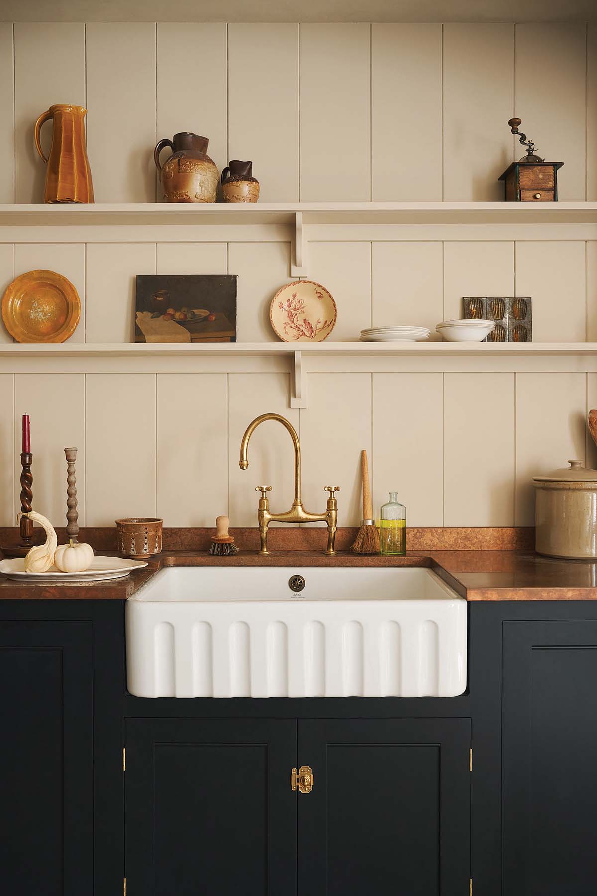 “We looked into the idea of adding big, handmade tiles behind the cooker to create a higher splashback,” says Helen. “In the end, the client decided to keep it simple and just have a small copper upstand; the idea is that tiles can be added at a later date once they’ve had the chance to use the space for a while.”