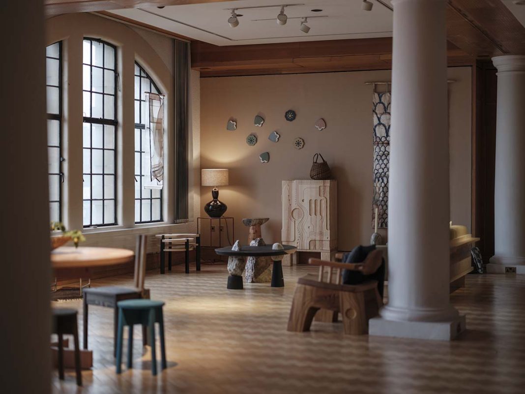 A few more pottery highlights: Tokes Sharif of Studio Brae presents an installation of ceramic vessels inspired by the still-life compositions of Giorgio Morandi. Katie Dixon’s unique gourd and squash-shaped ceramic lamps are inspired by produce symbolically associated with abundance and harvest.