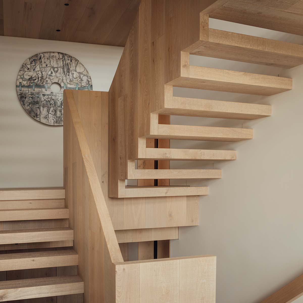 Finding just the right type of stone for the façade – resilient enough to cope with the rugged seaside weather, yet fitting in with the local vernacular – was one of the key first building blocks of the design. The search took a while. “We looked at a lot of stone,” laughs Alastair. “The local stuff is really dark and quite gloomy, especially when it gets wet. It just wasn’t the right appearance – the beach and the dunes here are all very light-coloured. So, we searched far and wide and found the Purbeck stone in the neighbouring county of Dorset.”