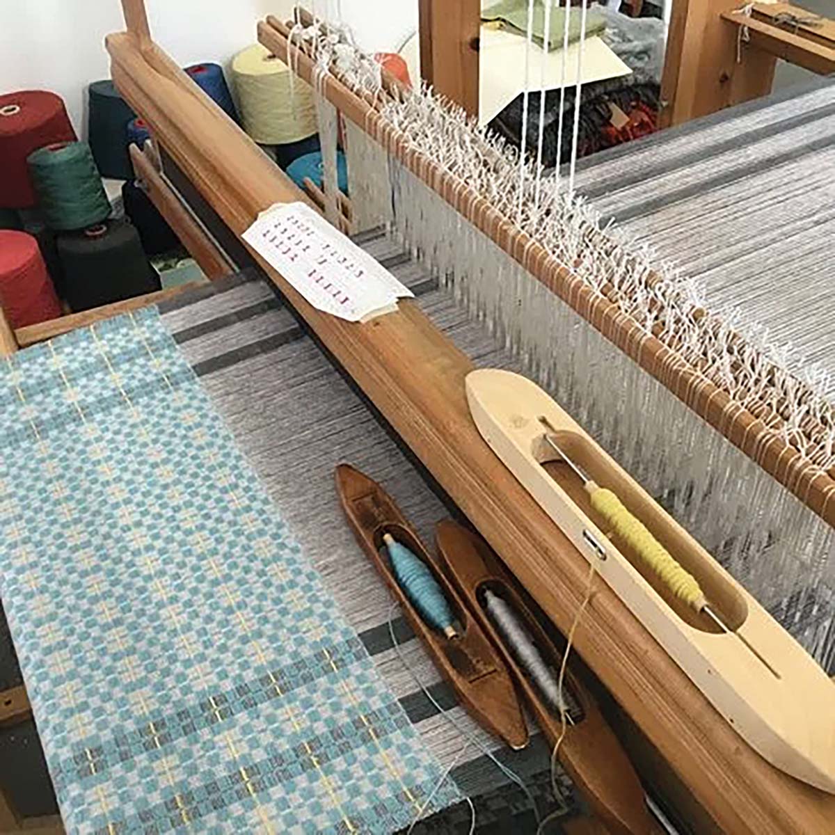 After an initial introduction to weaving with Cally Booker in Dundee (Bonny Claith), and a couple of short courses with James Donald in Edinburgh (PickOne Weave) where we wove on small table looms, I was able to spend some time at the Swedish weaving school, Vävstuga, in Massachusetts, where we used floor looms just the same as mine. It was there that I learned the principles of rug weaving and weaving with linen, and was really able to grasp the diverse range of possibilities of my eight-shaft countermarch loom.