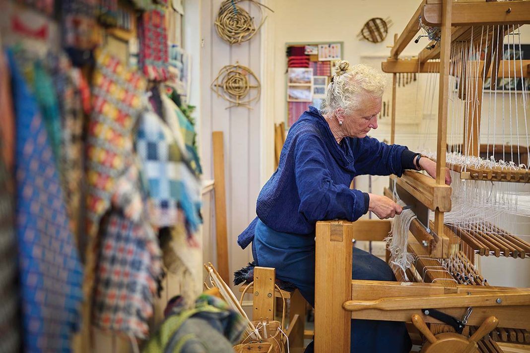 I was involved in healthcare for much of my working life, first as a clinician and then as a university academic. But most of my spare time was spent gardening and making, designing Fair Isle-style knitting patterns and learning how to make textiles. Visiting galleries and museums from an early age informed my understanding of design, colour and sense of place. I set up my textile studio in 2016 and now weave full-time.