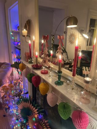 Homeowner Emily is a maximalist at heart. The art teacher’s flat may be small, but when it comes to Christmas the Sugar Plum Loft is big and bold, channelling a retro and quirky style. Emily adds a personal touch with homemade decorations that hark to the traditions of her childhood.