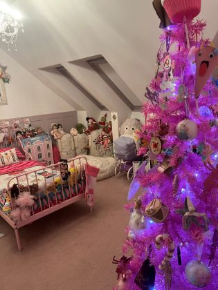 Christmas is the highlight of the year in this house with plans for the decorating themes hatched months in advance. Every year, the family try to think out of the box. This year, the theme is ‘Mouseland’ with a miniature mouse ski slope in the hall featuring colourful mouse skiers as well as their ‘Night Before Christmas’ display with more festive mice.