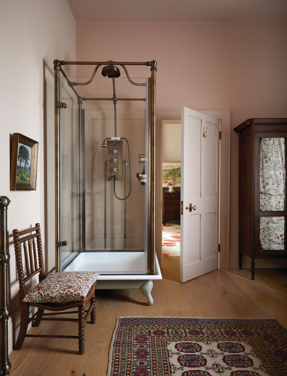 The bath and vanity were intended to be the main focal point, so it would’ve been easy to install any old shower and call it a day. Instead, Suzie chose an impressive, freestanding shower from Drummonds (the Spittal) which immediately signals luxury. The feet reference those of the bath, and the arched brass showerhead adds another magnificent curve to the scheme.