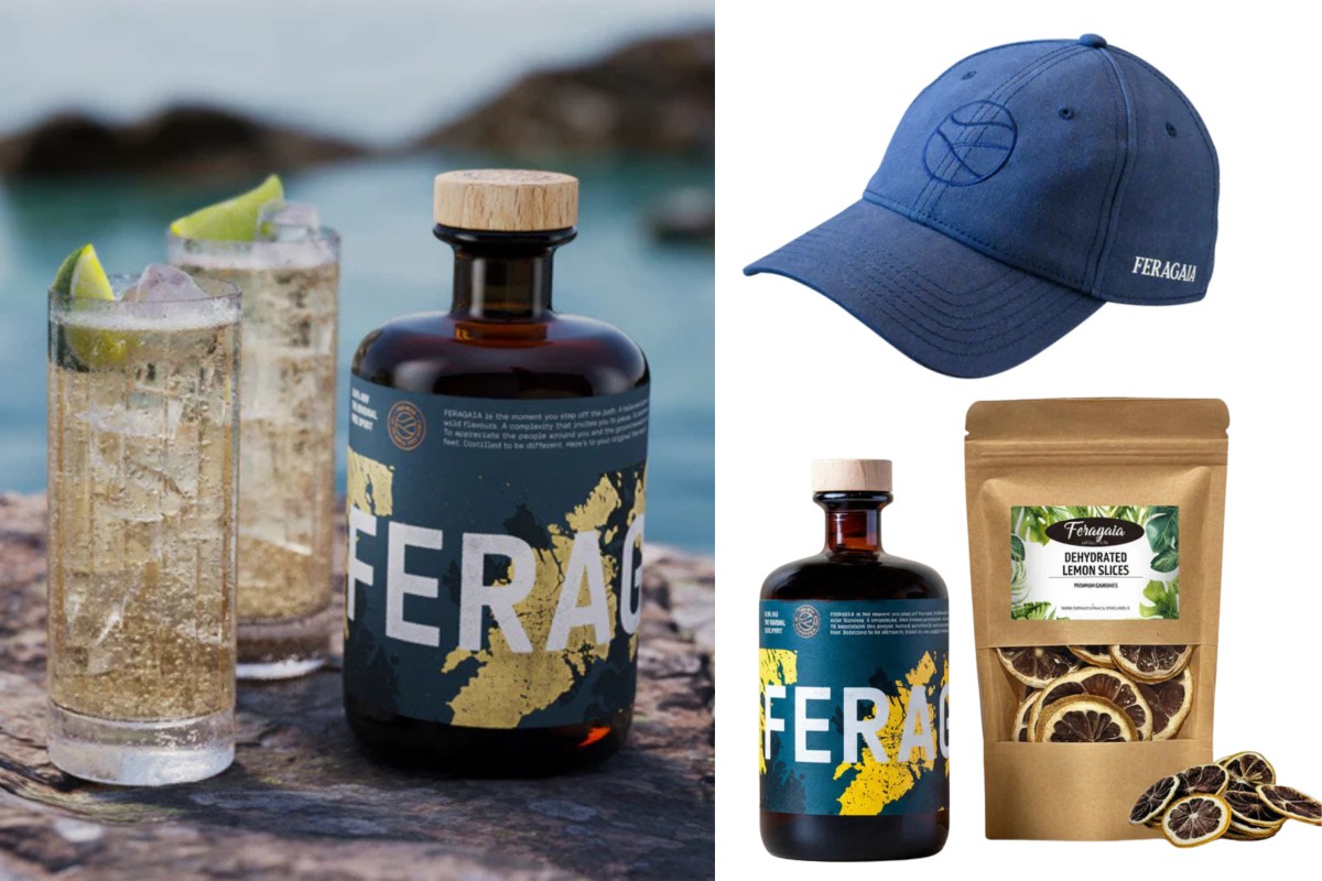 Wild Ginger highball made with Feragaia 70cl (£26.35), Zero Sugar Session bundle (£30), Feragaia’s Organic cotton cap (£15)