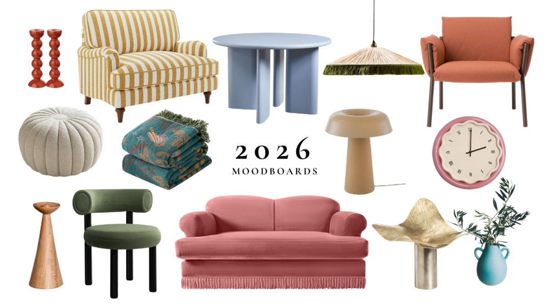 Trends, trends, trends – they’re all we hear about at this time of year. But trends don’t necessarily equate to good design. Instead of trying to recreate your favourite influencer’s million-pound home, take a scroll through our list of ten moodboards to see how playing with colour, texture and form from various eras can take your home from a mix-and-match collection of your favourite furniture to a cohesively designed space that balances comfort and style.
