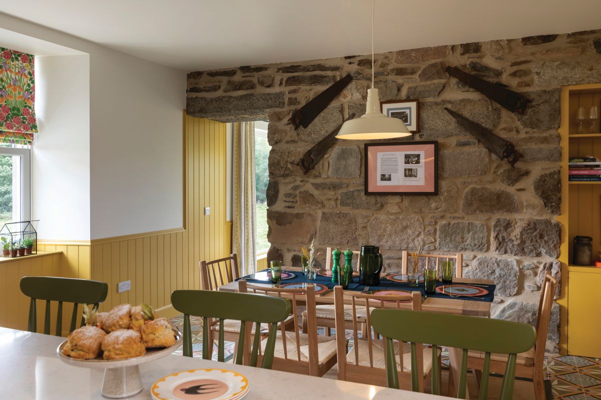 “People tend to think of a Scottish palette as oppressive purples and browns, but when the broom is out it really is a vivid yellow, and the grass in summer is such a bright, fresh green,” says Joelle. “We also sourced local materials and artwork for the cottages, so they are very Scottish – just not in a way we’re accustomed to.”
