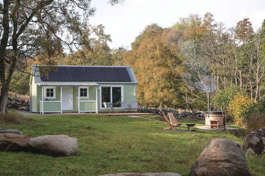 Owners Lucy and Will Holt worked with Casa Architect of Aberfeldy and Dunville Designs of Dunkeld to transform this once-crumbling fishing hut into an off-grid bolthole that boasts all the swagger of a boutique hotel. “We love the Scottish countryside, but we weren’t prepared to compromise on creature comforts,” says Lucy. “Our goal was to make River Cabin ooze luxury despite its wild location, so there’s a fitted kitchen and a cosy double bed with down pillows.”
