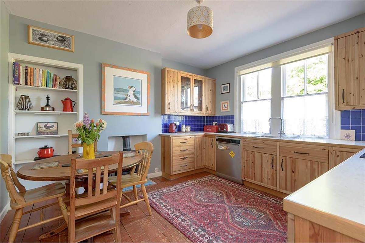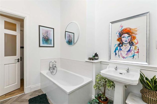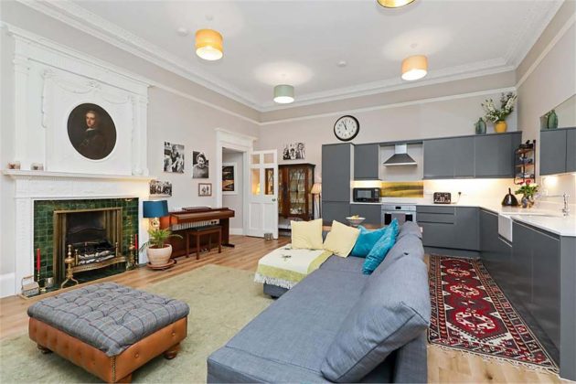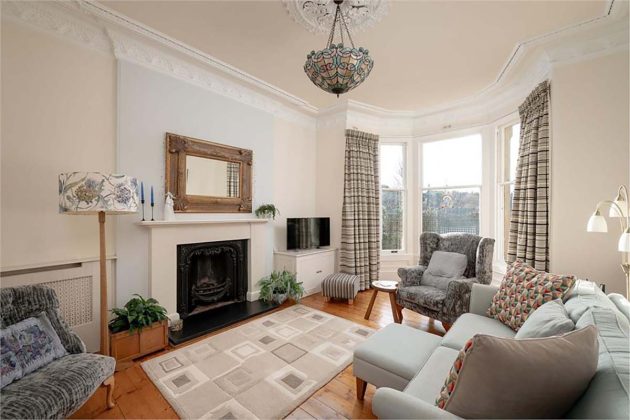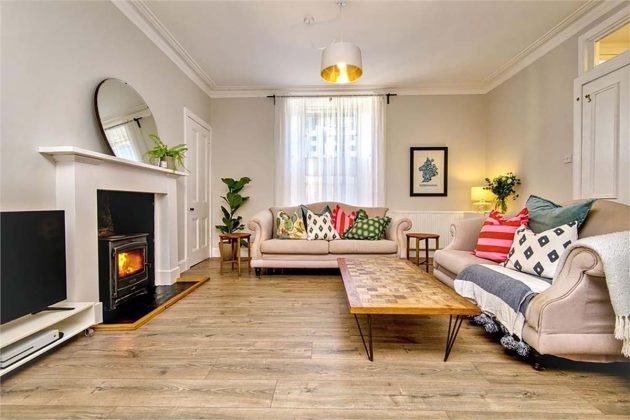 Shandon Crescent is an impressive terraced Villa situated in the highly sought-after Shandon area of Edinburgh. This three-bedroom property combines generous proportions and elegant period features all just moments from local amenities, excellent schools and the green space of Harrison Park and the Union Canal. Just as the other properties on this list, Shandon Crescent is charming because of its well-maintained period features. They offset the colourful interior beautifully, bringing inimitable character to each room. Little details bring joy, like the sunshine yellow door, mint green walls and cherry red fridge.
