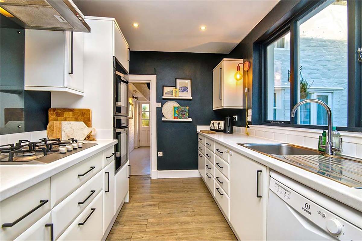 Each home strikes a balance between classical and contemporary design. There’s polished cabinetry above heavy-duty cast-iron stoves; bright colours splashed across original stone walls; patterned tiles acting as stylish fire surrounds; sensitively restored cornicing and wooden shutters painted white; and steep winding staircases polished to look brand new.