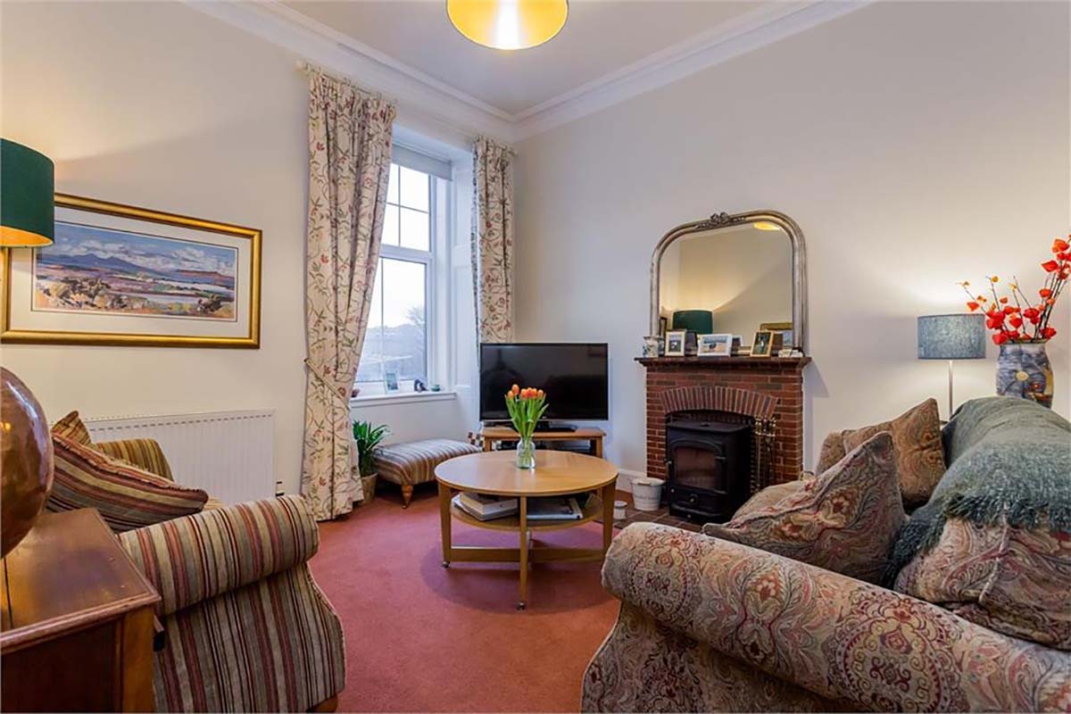 This upper-ground one-bedroom apartment blends historic charm with modern comfort in a peaceful woodland setting. Housed in a 1782 Scots Baronial mansion built upon the ruins of the 14th-century Smithfield Castle, this apartment extends to around 797 sq ft. The space offers a rare sense of privacy whilst remaining just a short walk from Peebles’ bustling High Street.