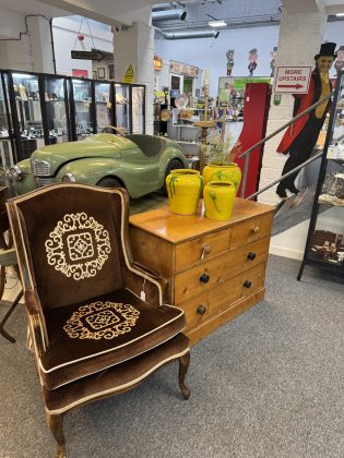 What: Salvage and antiques shop of curiosities featuring traditional upholstery, art and sustainable pieces.